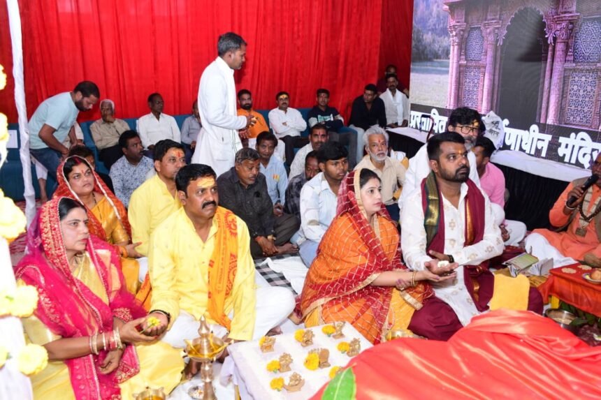 पिपरिया के पंडित जितेंद्र शास्त्री के सान्निध्य में संपन्न हुए इस अनुष्ठान में शहर के गणमान्य नागरिक और बड़ी संख्या में भक्त शामिल हुए।अयोध्या के ‘बंसी पहाड़पुर’ पत्थरों से होगा निर्माणमंदिर समिति के अध्यक्ष विजय पांडे ने बताया कि मंदिर का जीर्णोद्धार राजस्थान के बंसी पहाड़पुर के गुलाबी पत्थरों (पिंक सैंड स्टोन) से किया जा रहा।