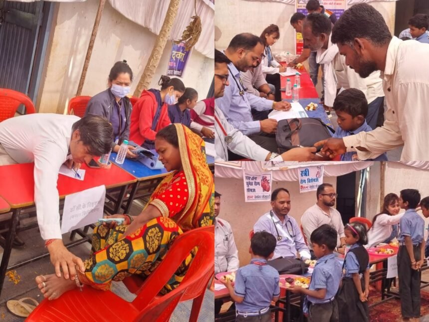 शिविर के दौरान जरूरतमंद मरीजों को नि:शुल्क दवाइयां भी वितरित की गईं।जांच और पूजन का अनूठा संगमस्वास्थ्य शिविर के साथ-साथ विद्यालय परिसर में ‘मात्र-पितृ पूजन दिवस’ का भावपूर्ण आयोजन भी किया गया, जिसमें बच्चों ने अपने माता-पिता का पूजन कर संस्कार का परिचय दिया। शिविर में भारत लैब के अक्षित शर्मा के सहयोग से मरीजों की नि:शुल्क शुगर जांच भी की गई।