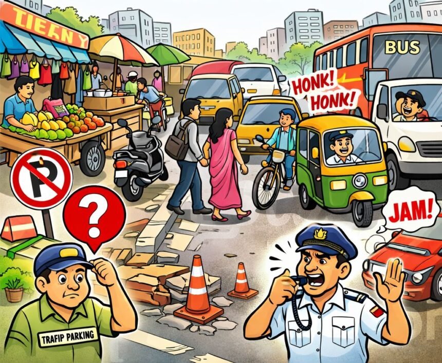 फुटपाथ से सड़क तक अतिक्रमण, नगर पालिका और यातायात व्यवस्था पर उठे सवाल