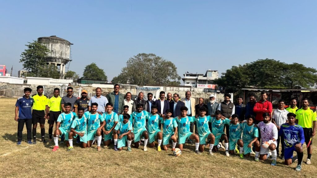 रेवांचल टाइम्स – मण्डला, जिले में प्रधानमंत्री कॉलेज आफ एक्सीलेंस रानी दुर्गावती शासकीय स्नातकोत्तर महाविद्यालय मंडला की मेजबानी में महात्मा गांधी स्टेडियम में खेली गई संभाग स्तरीय फुटबॉल प्रतियोगिता के दूसरे दिन फाइनल मुकाबले में जबलपुर ने मंडला को हराकर विजेता बना। फाइनल मैच के मुख्य अतिथि रानी दुर्गावती विश्वविद्यालय जबलपुर शारीरिक शिक्षा विभाग के संचालक डॉक्टर विशाल बन्ने, विशिष्ट अतिथि नगर पालिका अध्यक्ष विनोद कुशवाहा, जन भागीदारी अध्यक्ष चंद्रशेखर निखारे, जन भागीदारी के सदस्य अमन अग्रवाल, जिला फुटबॉल संघ के अध्यक्ष डॉ दिलीप शर्मा, तथा महाविद्यालय के प्राचार्य डॉक्टर अनिल गुप्ता, वरिष्ठ प्राध्यापक डॉक्टर टीपी मिश्रा, डॉक्टर बी टेमरे, डॉक्टर अर्जुन बघेल, डॉ. एस आर बघेल, डॉ. राजेश धुर्वे एवं चयनकरता डा कन्हैया कुमार, विभिन्न महाविद्यालय से आए खेल अधिकारी डॉक्टर विवेक जायसवाल, डॉक्टर प्रशांत यादव, डॉक्टर आशीष चतुर्वेदी, डॉक्टर देवेंद्र बघेल, डॉक्टर रवि यादव, डॉक्टर अनूप परिहार, निलेश चौरे उपस्थित रहे। प्रतियोगिता का श्रेष्ट खिलाड़ी का पुरस्कार जबलपुर के नेगी तथा मंडला के रोहित को दिया गया।