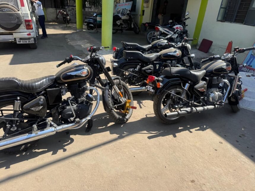 दैनिक रेवाँचल टाईम्स – मंडला, पुलिस अधीक्षक मंडला रजत सकलेचा के निर्देशन में यातायात थाना मंडला द्वारा शहर में अमानक साइलेंसर एवं प्रेशर हॉर्न लगाकर तेज शोर करने वाले दोपहिया वाहनों के विरुद्ध विशेष अभियान चलाया गया। अभियान के दौरान विशेष रूप से बुलेट एवं अन्य मोटरसाइकिलों में मॉडिफाइड साइलेंसर एवं अनधिकृत प्रेशर हॉर्न लगाकर आमजन को परेशान करने वाले वाहनों पर कार्रवाई की गई।