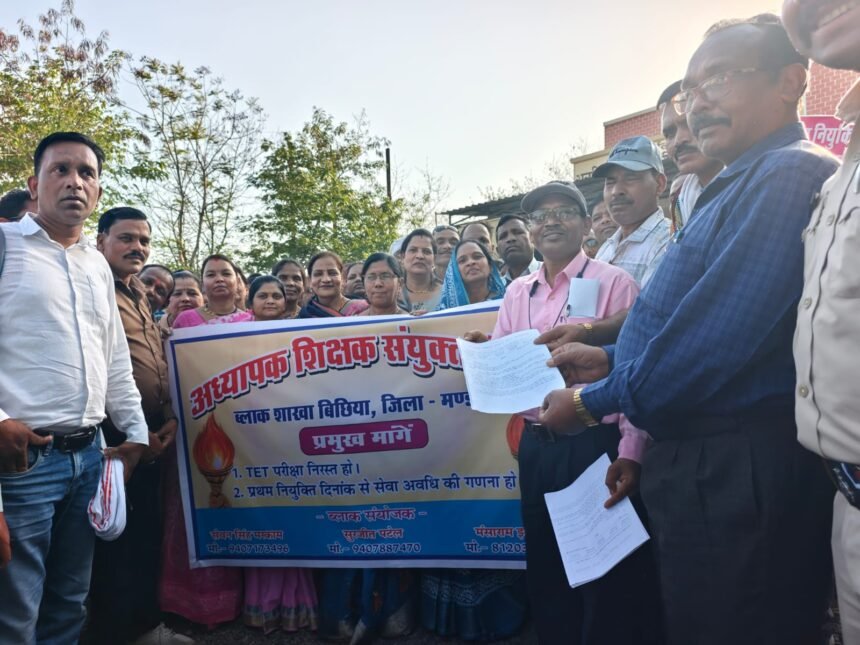 माननीय सर्वोच्च न्यायालय के निर्णय के परिपेक्ष में शिक्षक पात्रता परीक्षा TET की अनिवार्यता समाप्त करने एवं नियुक्ति दिनांक से सेवा अवधि की गणना के संबंध में संयुक्त मोर्चा के तत्वाधान में विशाल धरना प्रदर्शन एवं रैली विनोद रंगमंच बिछिया से तहसील कार्यालय तक शिक्षकों की भारी संख्या बल के साथ रैली निकाली गई।