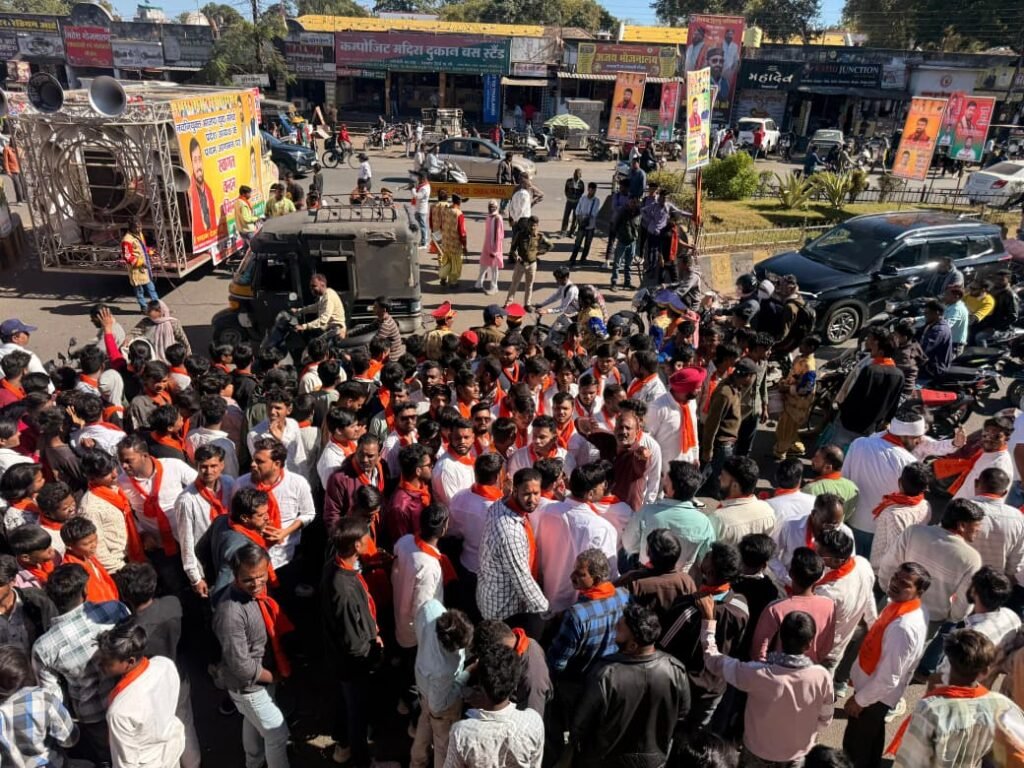 जेसीबी से पुष्पवर्षा और आतिशबाजी के बीच नवनियुक्त भाजयुमो प्रदेश अध्यक्ष श्याम टेलर का भव्य स्वागत