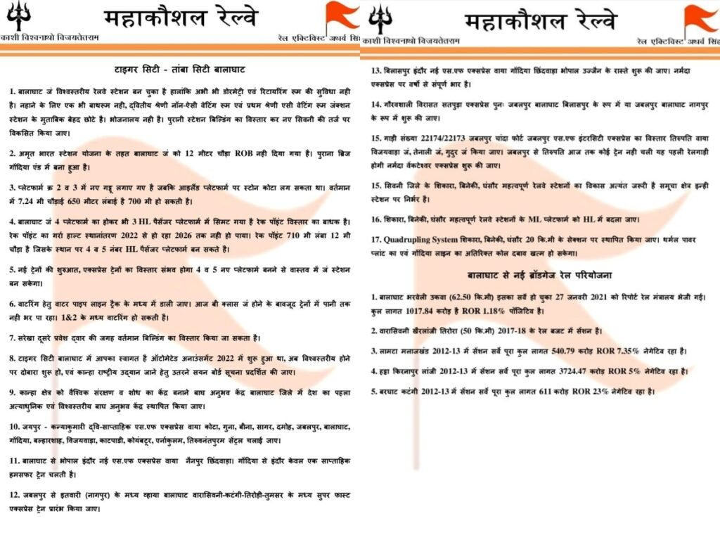 बैठक में बालाघाट क्षेत्र की कई प्रस्तावित ब्रॉडगेज रेल परियोजनाओं पर भी चर्चा की गई, जिनमें—