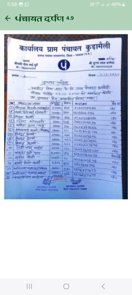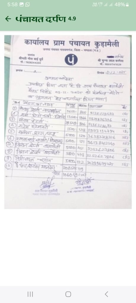 वही आदिवासी बाहुल्य मंडला जिले में विकास कार्यों के नाम पर यदि इस प्रकार के अनियमित भुगतान किए जाते हैं तो इसका सीधा असर ग्रामीण विकास और रोजगार सृजन पर पड़ता है। जब पंचायत स्तर पर ही पारदर्शिता पर प्रश्नचिह्न लग जाए तो विकास कार्य केवल कागजों में सिमटकर रह जाने का खतरा बढ़ जाता है।