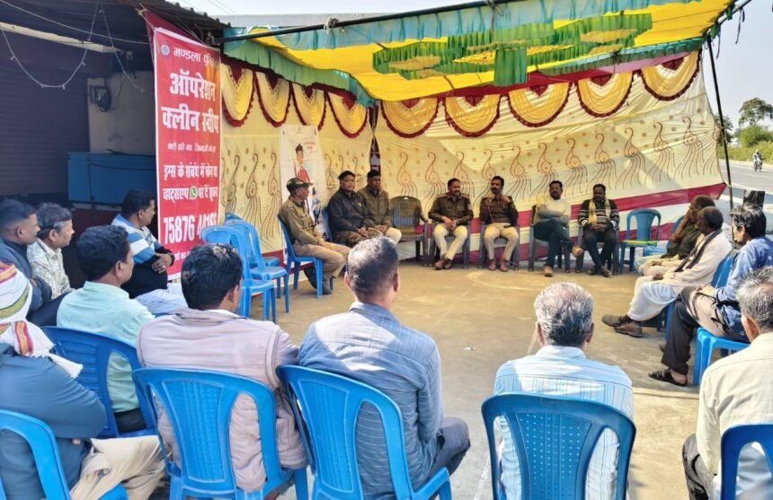 पुलिस अधीक्षक मंडला के निर्देशन में चलाए जा रहे क्लीन स्वीप अभियान एवं यातायात जागरूकता अभियान के तहत थाना बिछिया अंतर्गत ग्राम औराई में ग्रामीणों को नशे से दूर रहने, दो पहिया वाहन चलाते समय अनिवार्य रूप से हेलमेट पहनने, यातायात नियमों का पालन करने तथा राहवीर योजना की जानकारी देकर जागरूक किया गया।